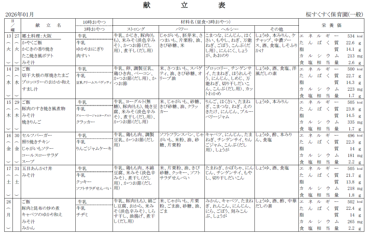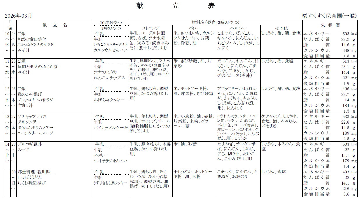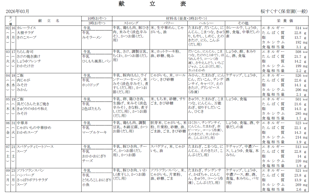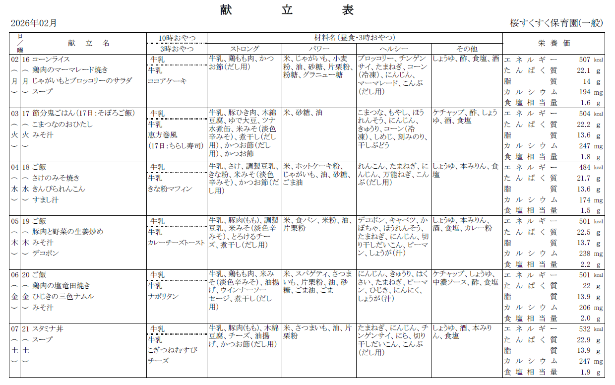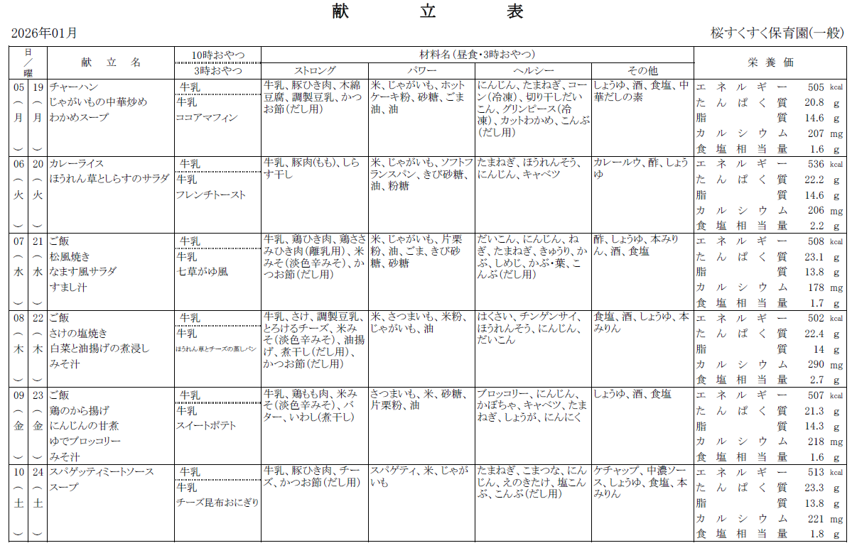 保育園からのお知らせ